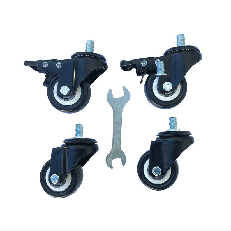 Set composto da 4 ruote resistenti, di cui 2 autobloccanti, ideali per garantire stabilità e sicurezza.