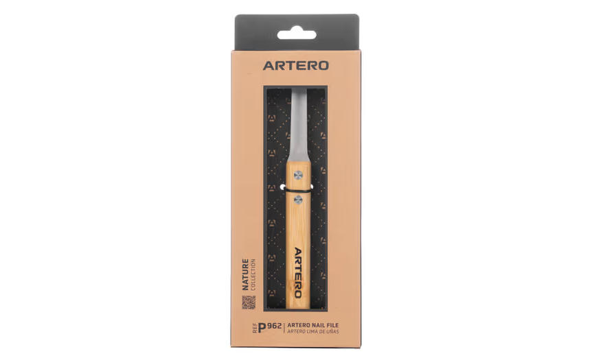 La lima per unghie Artero a doppia faccia della collezione Nature è progettata per limare delicatamente le unghie di cani, gatti e piccoli animali domestici , come i conigli. È utile anche per levigare i bordi delle unghie dopo il taglio o per eliminare le sbavature. Il manico della lima è realizzato a mano in bambù, un materiale naturale ed ecologico. Ha proprietà antibatteriche, antimicotiche e impermeabili. Tutti i componenti della lima sono riciclabili.