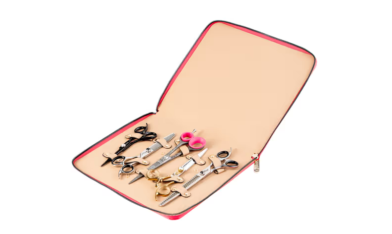 Il Groom Professional Black Scissor Case è un elegante astuccio nero con cerniera per forbici da toelettatura . Può contenere cinque paia di forbici. All'interno, troverete maniglie che fissano gli strumenti all'altezza della lama e delle orecchie. Inoltre, potete regolare il cinturino per adattarlo al vostro modello di forbici. Questo assicura che non scivolino fuori dall'astuccio, indipendentemente dalla posizione in cui le tenete. Il materiale liscio dell'organizer assicura che gli strumenti scorrano senza problemi e non graffino. Inoltre, il contatto tra le singole paia di forbici è limitato, riducendo il rischio di scheggiature. L'astuccio ha un aspetto fantastico. È una combinazione di minimalismo ed eleganza. Il design semplice lo rende versatile, completando qualsiasi interno e personalità, mentre il materiale esterno delicatamente goffrato e la combinazione del classico nero con accenti dorati aggiungono un tocco di eleganza.