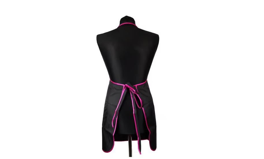 Grembiule professionale da toelettatura con finiture rosa . Molto elegante, perfetto per saloni di toelettatura, parrucchieri o per uso domestico. Realizzato in tessuto di poliestere di alta qualità, estremamente facile da pulire: basta pulirlo con un panno umido. Questo modello di grembiule presenta un taglio snellente e offre un elevato comfort durante l'intera giornata lavorativa. Il materiale è impermeabile e impedisce ai peli di penetrare, il che è particolarmente importante durante la toelettatura.