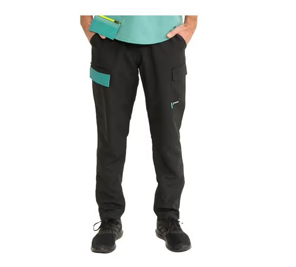 I pantaloni cargo neri professionali Artero Berlin da donna e da uomo proteggono il corpo da sporco e peli di animali domestici appiccicosi, garantendo al contempo il massimo comfort durante il lavoro. Gli inserti turchesi su tessuto nero conferiscono loro un look elegante e moderno. Due tasche a fessura si trovano all'altezza dei fianchi, una tasca con patta sulla coscia sinistra e una tasca dedicata per le forbici sulla coscia destra. Questo consente di trasportare un'ampia gamma di strumenti e accessori necessari per la toelettatura, come pettini, spazzole, tagliaunghie, forbici e cosmetici.