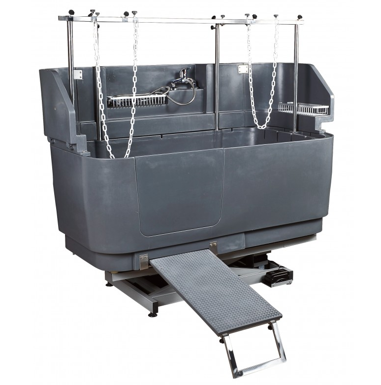 Venduto su telaio elettrico con comando a pedale, porta rimovibile, rampa di accesso antiscivolo incorporata, paraschizzi, vano portaoggetti in acciaio inox e impianto idraulico. Barra trasversale quadrupla con 4 punti di attacco.