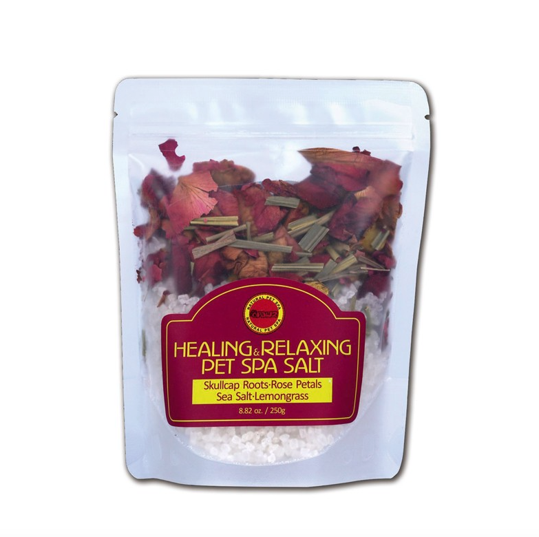 Miscela di sali marini naturali arricchiti con olio essenziale di lemongrass e petali di rosa essiccati. Un prodotto ideale per i trattamenti SPA dedicati ai cani, pensato per favorire il relax, purificare la pelle e donare al mantello una nuova vitalità.