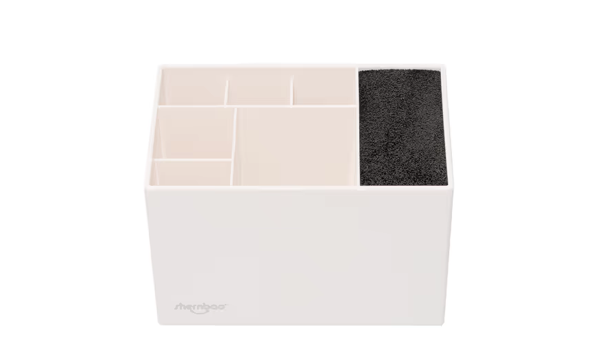 Questo pratico organizer per la toelettatura di Shernbao è realizzato in plastica di alta qualità. Manterrà l'ambiente pulito e ordinato e avrai sempre a portata di mano tutti gli accessori essenziali, come spazzole, forbici, regolabarba e feltrini. Questo organizer è dotato di sette scomparti , di cui cinque più piccoli e due più grandi. Uno di questi scomparti presenta un inserto in fibra di nylon che previene i danni alle forbici e le protegge da polvere, sporco e usura generale. Può essere facilmente rimosso, lavato e reinserito. Un articolo estremamente utile in qualsiasi salone di toelettatura. Il prodotto è disponibile in due colori: bianco e nero.