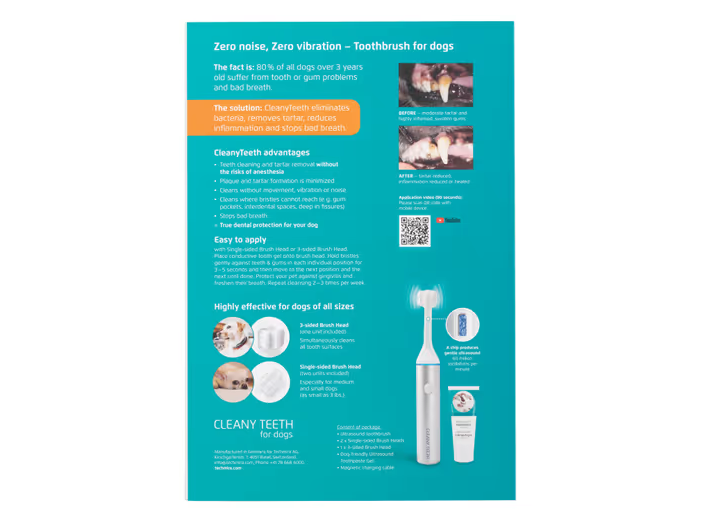Mantieni denti puliti, gengive sane e alito fresco al tuo animale domestico con il nuovo KIT 2.0. La tecnologia a ultrasuoni elimina placca, tartaro e batteri in modo silenzioso, delicato e senza stress.