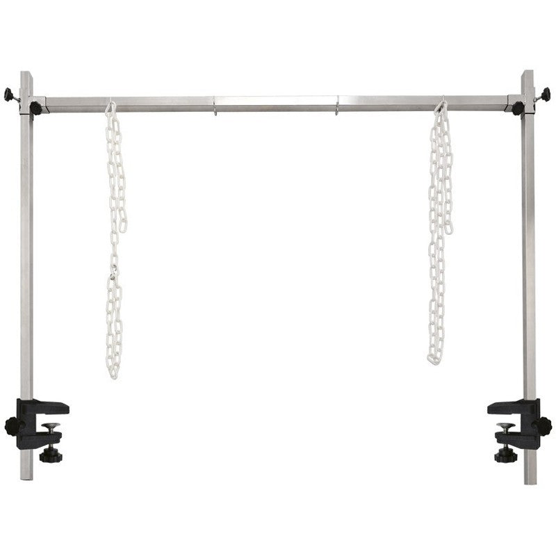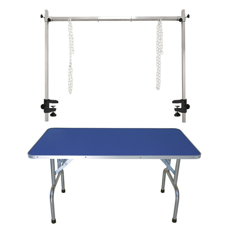 Il tavolo è regolabile su due diverse altezze (70 cm e 85 cm), adattandosi facilmente a diverse esigenze operative. È dotato di forca doppia regolabile e pieghevole, accompagnata da due solide catene per una tenuta ottimale durante l’utilizzo.