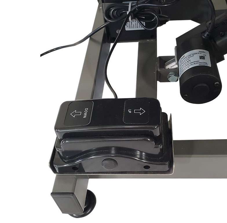 Il telaio metallico è regolabile in altezza da 46 a 103 cm tramite comando a pedale.