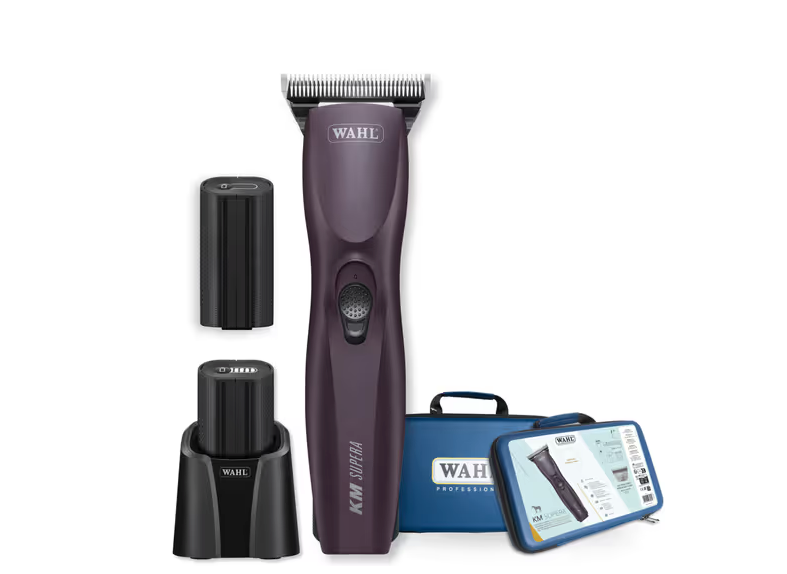 Wahl KM Supera Brushless è il degno successore di Wahl KM Cordless. Questa moderna tosatrice per cavalli senza fili è dotata di un motore brushless potente, silenzioso ed efficiente con controllo automatico della velocità. Due impostazioni di velocità consentono di regolare la velocità e la fluidità del taglio in base alle esigenze. T. Wahl KM Supera è una tosatrice professionale, ben bilanciata e altamente efficiente che diventerà sicuramente uno strumento indispensabile per ogni proprietario di cavalli, toelettatore, allevatore o veterinario.